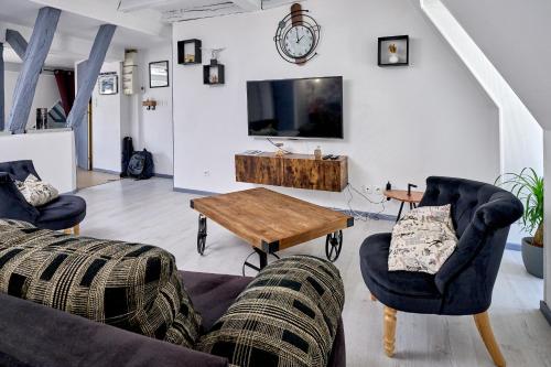 Appartement de caractère, charme har udsigt til byen og ligger i Nevers, 2 minutters gang fra Palais ducal de Nevers og 800 m fra Gare de Nevers Station. Denne lejlighed har gratis privat parkering, en pengeautomat og gratis wi-fi.