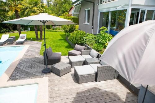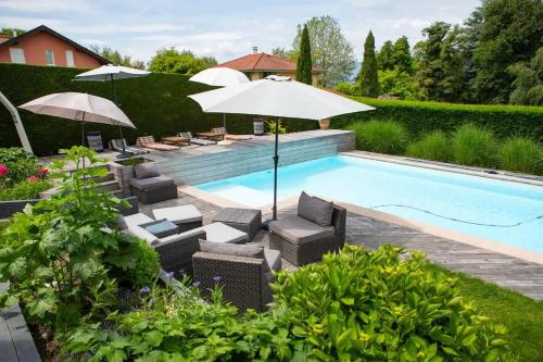 Villa bord du Leman, piscine privée et accés direct au lac ligger i Nernier med pooludsigt. Her er et fitnesscenter, en have og grillfaciliteter. Der er også gratis wi-fi. Feriehuset ligger i et område hvor gæsterne kan deltage i aktiviteter såsom at tage på vandretur, fiske og cykle. Der er gratis privat parkering.
