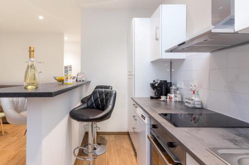 Denne lejlighed med aircondition består af 1 soveværelse, stue, et fuldt udstyret køkken med køleskab og kaffemaskine samt 1 badeværelse med bruser og gratis toiletartikler. Lejligheden har håndklæder og sengetøj.