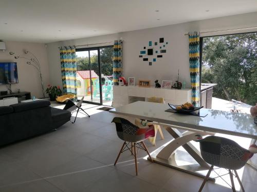 Villa avec piscine au calme vue mer ligger i La Seyne-sur-Mer med udsigt til byen. Her er en udendørs swimmingpool, en have og en terrasse. Der er også gratis wi-fi. Dette overnatningssted privat pool og gratis privat parkering.