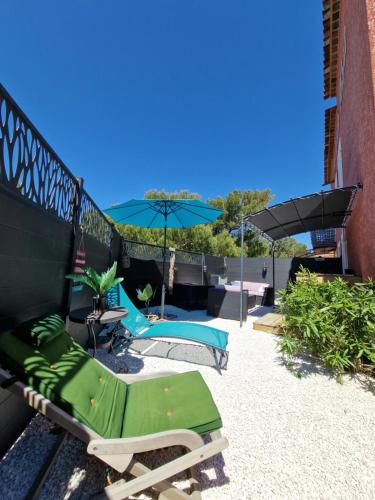 L'Instant Mer - Bord de Mer - Studio avec grand jardin à La Capte ligger i Hyères, 2 minutters gang fra Plage de la Capte Strand og 300 m fra Bergerie Strand. Her er gratis wi-fi, aircondition, en have og en terrasse. Overnatningsstedet ligger 14 minutters gang fra Plage des Pesquiers Strand og har en concierge-tjeneste.