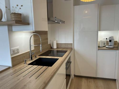 Denne lejlighed har 1 soveværelse, tv, et veludstyret køkken med køleskab og ovn, og 1 badeværelse med bruser.
