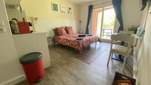 Joli studio Camargue Lou Rouge Arles ligger i Arles, 7 km fra Arènes d'Arles og 34 km fra Parc Expo Nîmes. Her er aircondition, en balkon og gratis wi-fi. Denne lejlighed har privat pool, have og gratis privat parkering.