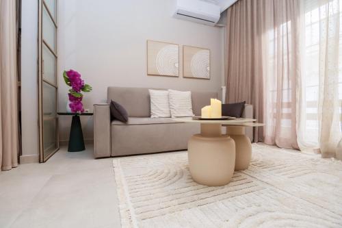 Denne lejlighed med aircondition består af 1 soveværelse, stue, et fuldt udstyret køkken med køleskab og kaffemaskine samt 1 badeværelse med bruser og gratis toiletartikler. Lejligheden har håndklæder og sengetøj.