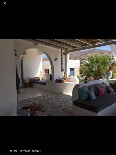 Villa Campos Yalos beach ligger i Chora med udsigt til byen. Her er en have, et privat strandområde og en terrasse. Der er også gratis wi-fi. Dette overnatningssted ved stranden har en balkon og gratis privat parkering.