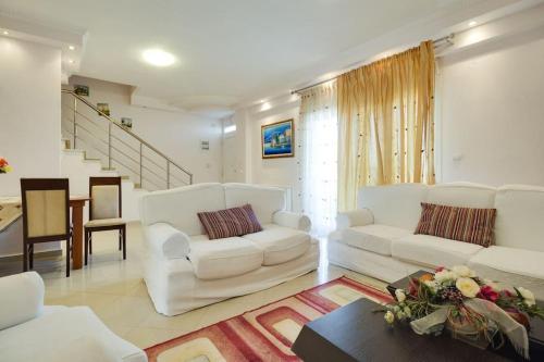 The villa provides guests with a terrace, mountain views, a seating area, satellite flat-screen TV, a fully equipped kitchen with an oven and a microwave, and a private bathroom with bath. Units have a kettle, while some rooms also boast a balcony and others also feature sea views. At the villa complex, the units include bed linen and towels.