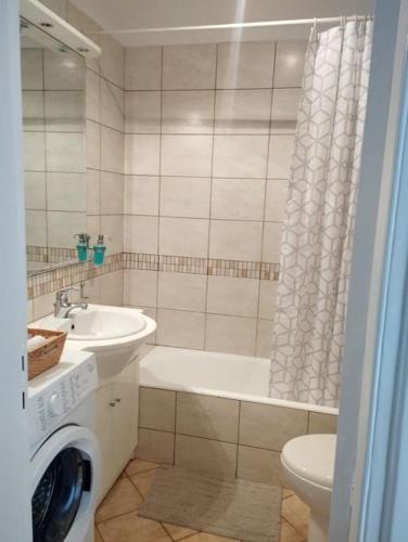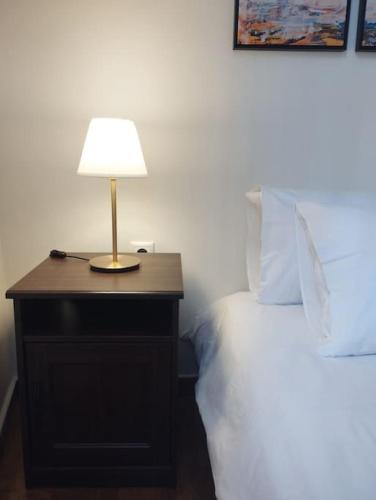 Denne lejlighed med aircondition består af 1 soveværelse, stue, et fuldt udstyret køkken med køleskab og kaffemaskine samt 1 badeværelse med badekar og gratis toiletartikler. Lejligheden har håndklæder og sengetøj.