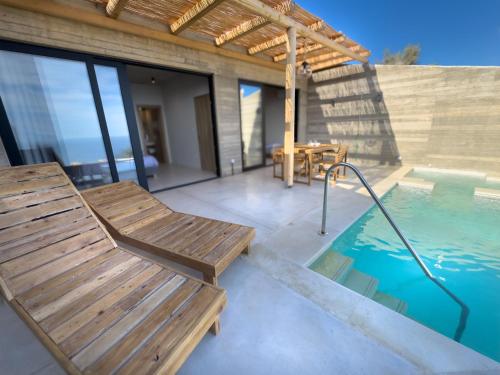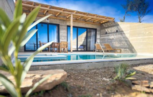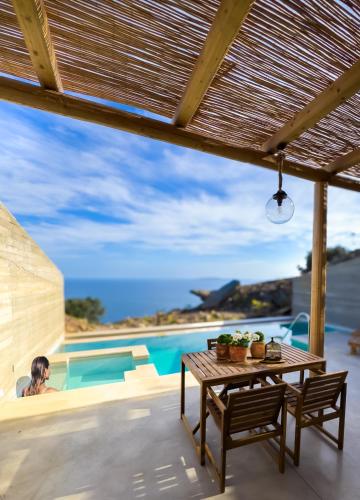 Indigo Suite A ligger i Achlada og har en udendørs pool og havudsigt. Overnatningsstedet ligger 23 km fra Venetian Walls og har en terrasse samt gratis privat parkering.