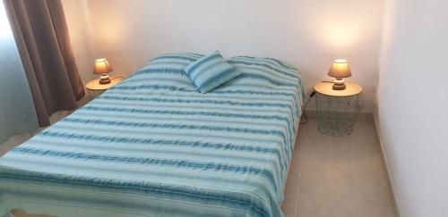 Denne lejlighed med aircondition består af 2 soveværelser, stue, et fuldt udstyret køkken med køleskab og kaffemaskine samt 1 badeværelse med bruser og en hårtørrer. Lejligheden har håndklæder og sengetøj.