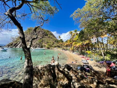 Ti kaz COCO DOUCEUW sea view ligger i Sainte-Anne, tæt på Plage de Gros Sable Strand. Her er sæsonåben udendørs swimmingpool, udlejning af biler, et privat strandområde, en have og en restaurant. Dette overnatningssted ved stranden har en terrasse, bordtennis, gratis privat parkering og gratis wi-fi.