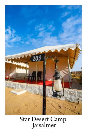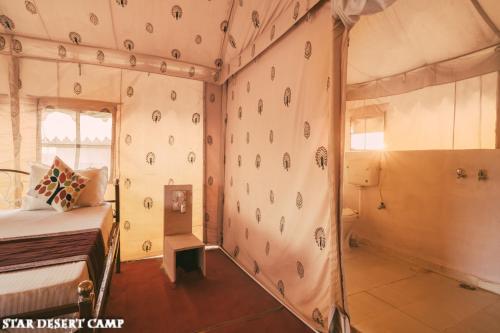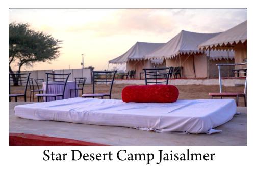 Star Desert Camp Jaisalmer ligger i Jaisalmer, 43 km fra Jaisalmer-fortet, og har en have, en restaurant og en bar samt gratis privat parkering. Overnatningsstedet ligger 4,6 km fra Desert National Park og har massagebehandlinger. Overnatningsstedet har døgnåben reception, lufthavnstransport og et fælles køkken samt gratis wi-fi.