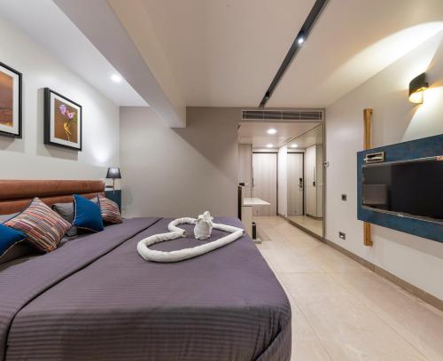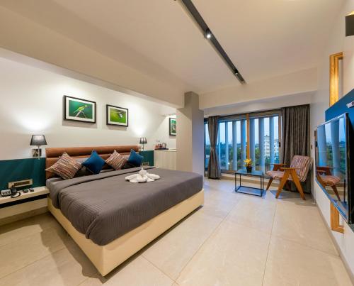 Værelserne hos hotellet har fladskærms-tv.