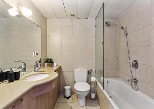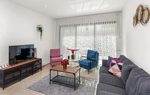 Denne lejlighed med aircondition består af 1 soveværelse, stue, et fuldt udstyret køkken med køleskab og kaffemaskine samt 1 badeværelse med bruser og gratis toiletartikler. Lejligheden har håndklæder og sengetøj.