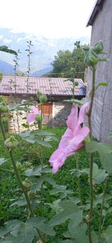 La dimora del castagno ligger i Ormea, Piemonte og har en balkon samt bjergudsigt.