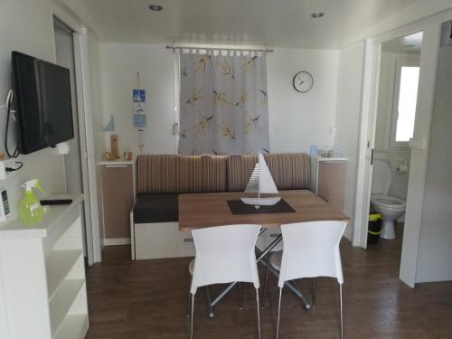 Hos campingpladsen får gæsterne terrasse, udsigt til have, opholdsområde, satellit-fladskærms-tv, et fuldt udstyret køkken med et køleskab og en mikrobølgeovn og privat badeværelse med bruser og gratis toiletartikler. Der er også kogeplader og brødrister samt kaffemaskine og kedel.