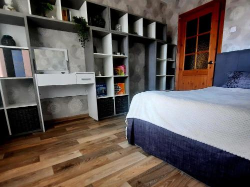 Denne lejlighed består af 1 soveværelse, stue, et fuldt udstyret køkken med køleskab og kedel samt 1 badeværelse med bruser og gratis toiletartikler. Lejligheden har håndklæder og sengetøj.