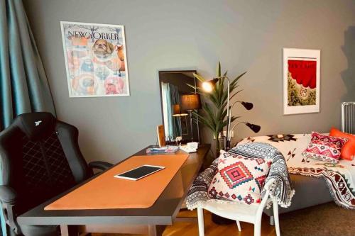 Denne lejlighed med aircondition består af 1 soveværelse, stue, et fuldt udstyret køkken med køleskab og kedel samt 1 badeværelse med bidet og bruser. Lejligheden har håndklæder og sengetøj.