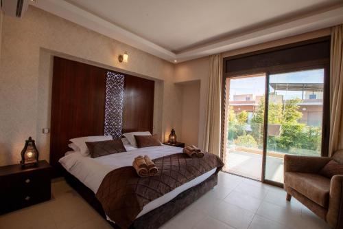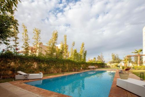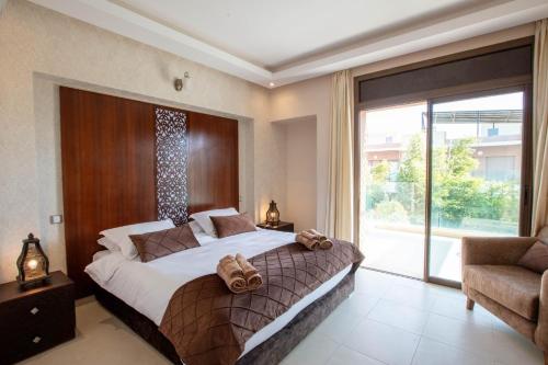 Modern Villa at Golf Noria Pool and Security ligger i Marrakech. Her er gratis wi-fi og udsigt til en have. Derudover er der en udendørs swimmingpool og en terrasse. Denne villa har privat pool, have og gratis privat parkering.