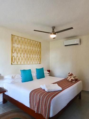 Værelserne på Hotel Puerto Holbox Beach Front har havudsigt og 2 dobbeltsenge. Samtlige værelser har aircondition og ventilator. Der er køleskab og eget badeværelse med bruser.