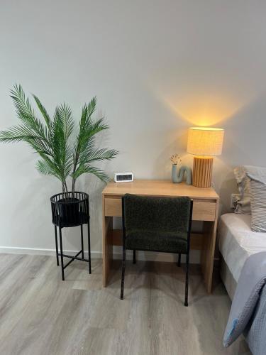 Denne lejlighed har 1 soveværelse, tekøkken med køleskab og mikrobølgeovn samt kedel. Lejligheden har håndklæder og sengetøj.