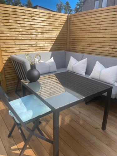 Dette feriehus byder på terrasse og 1 separat soveværelse og et fuldt udstyret køkken. Her er fladskærms-tv.