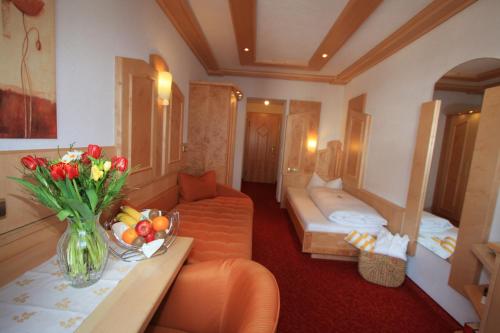 De rummelige værelser er indrettede i alpestil og har opholdsområde med kabel-tv. Næsten alle værelser har balkon, og nogle af værelserne har en traditionel tyrolsk kakkelovn. Der tilbydes allergivenligt sengetøj.