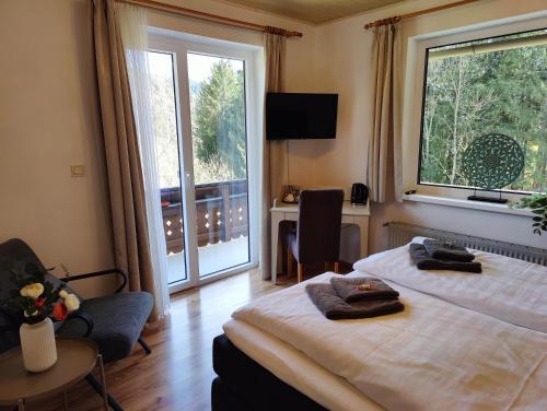 Alle enheder hos pensionatet har en balkon med bjergudsigt. Alle værelser har en kedel og et privat badeværelse med bruser og en hårtørrer, og nogle af værelserne har et køkken med et køleskab. Alle værelser hos Pension Almhof har sengetøj og håndklæder.