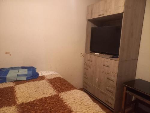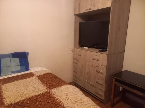 Denne lejlighed har 1 soveværelse, fladskærms-tv og køkken.