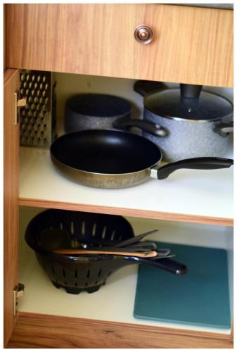 Denne lejlighed har 1 soveværelse, fladskærms-tv og køkken.