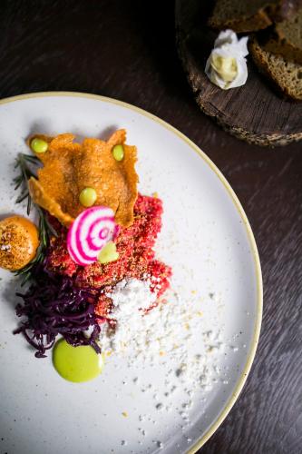 Restauranten serverer polske og regionale retter. Der tilbydes desuden morgenbuffet og grillfaciliteter. Der er en jægerpub, hvor man kan nyde drikkevarer.
