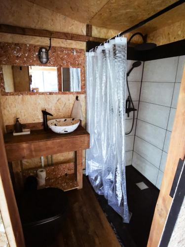 Feriehuset har 1 soveværelse, tekøkken med et køleskab og kogeplader samt 1 badeværelse med bruser. Feriehuset har håndklæder og sengetøj.