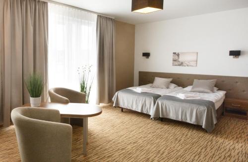 Holiday Golden Resort & Spa ligger i Łazy, 4 minutters gang fra Plaża Dąbkowice Strand, og har en have, en terrasse og en restaurant samt privat parkering. Overnatningsstedet har en bar, vandsportsfaciliteter og et spa- og wellnesscenter. Resortet har udendørs swimmingpool, et fitnessrum, karaoke og en børneklub.