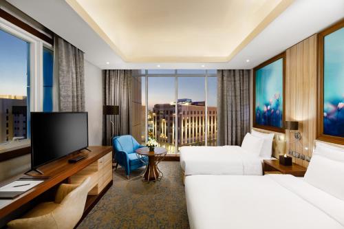 Hotellet har aircondition og værelser med skrivebord, kedel, en minibar, værdiboks, fladskærms-tv samt et privat badeværelse med bidet. Det private badeværelse har bruser, gratis toiletartikler og en hårtørrer. Alle værelser hos Millennium Place Doha har sengetøj og håndklæder.