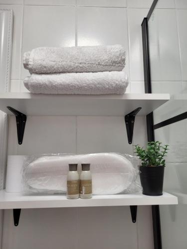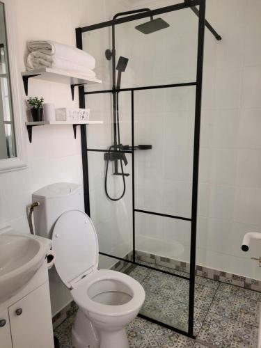 Denne lejlighed med aircondition består af 1 soveværelse, stue, et fuldt udstyret køkken med køleskab og 1 badeværelse med bruser og gratis toiletartikler. Lejligheden har håndklæder og sengetøj.