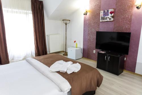 Hotel Rodiv features a seasonal outdoor swimming pool, terrace, a restaurant and bar in Găiești. The hotel also provides free WiFi and free private parking.