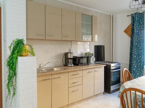 Denne lejlighed har 2 soveværelser, køkken med et køleskab og en ovn, fladskærms-tv, opholdsområde og 1 badeværelse med boblebad. Lejligheden har håndklæder og sengetøj.