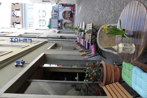 I stueetagen på Zak Hotel er der opbevaringsrum til cykler og en populær bar med terrasse.