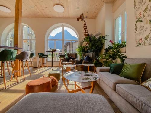 GRAND Your home with common kitchen ligger centralt i Engelberg, ved siden af landsbyens togstation og 600 m fra både Titlis Rotair-svævebanen og Gerschnialp - Trübsee. Der er bar på stedet.