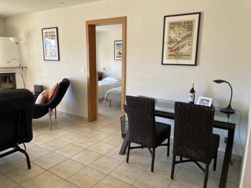 Le Chalet Rosat Apartment 25 ligger i Château-d'Oex med bjergudsigt. Her er et fitnesscenter, et fælles opholdsområde og en terrasse. Der er også gratis wi-fi. Dette overnatningssted har en balkon og gratis privat parkering.