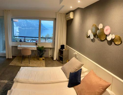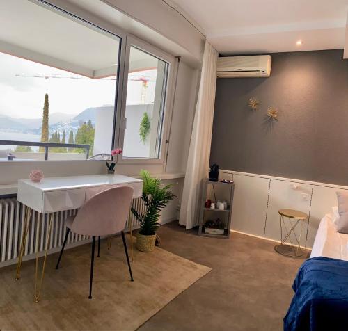 Seeblick Bissone ligger ved stranden i Bissone, kun 2,4 km fra Swissminiatur. Her er en sæsonåben udendørs swimmingpool, en have, et privat strandområde og gratis wi-fi. Overnatningsstedet ligger 10 km fra Lugano Station og har en terrasse samt gratis privat parkering.