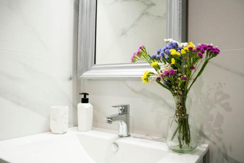 Denne lejlighed har 3 soveværelser, fladskærms-tv og et fuldt udstyret køkken, hvor gæsterne kan finde køleskab, ovn, vaskemaskine, mikrobølgeovn og kogeplader. Lejligheden har håndklæder og sengetøj.