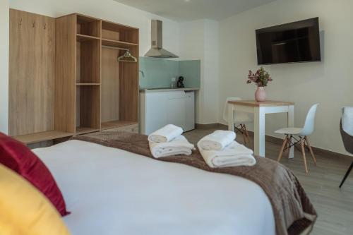 Hver enhed har privat badeværelse og bruser, aircondition, fladskærms-tv og køleskab. Der er også køkken i nogle af enhederne udstyret med en mikrobølgeovn.