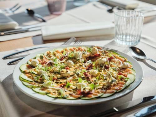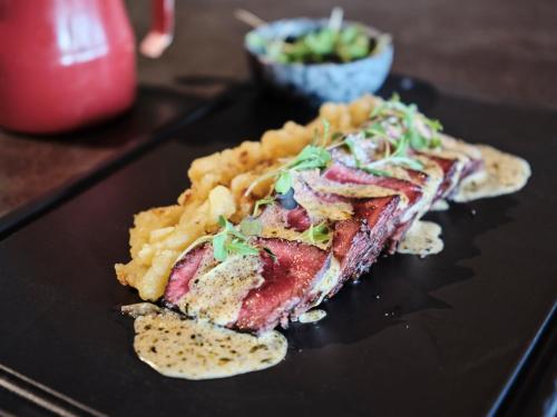 The Qgat's restaurant serves a range of Mediterranean cuisine. The on-site coffee shop serves drinks and snacks.