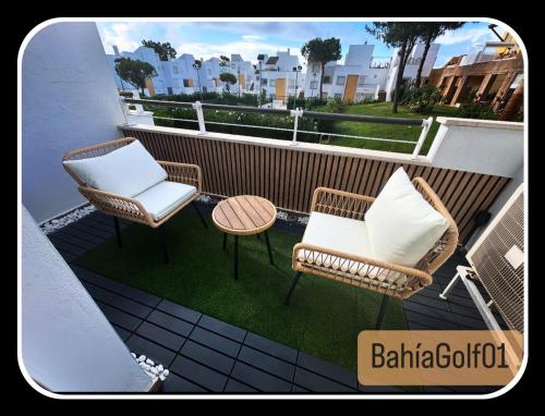 BahiaGolf01 ligger i Lepe og har aircondition og en privat pool, udsigt til en have og en terrasse. Lejligheden ligger i et område hvor gæsterne kan deltage i aktiviteter såsom at tage på vandretur, windsurfe og fiske. Der er gratis privat parkering.
