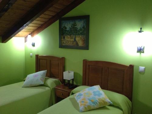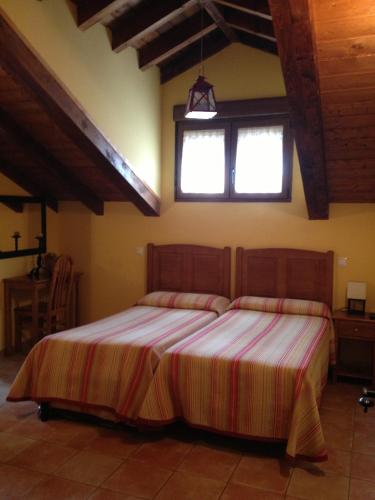 Samtlige lyse værelser på Hosteria San Emeterio har attraktiv indretning med skråt bjælkeloft. Der er varme, fladskærms-tv og eget badeværelse.