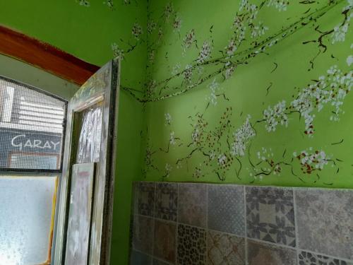Det fælles badeværelse har badekar. Hos vandrehjemmet har alle værelser et fælles badeværelse med bruser.
