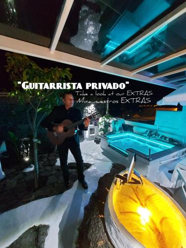 ALOELUX VILLA! - Private Villa with Jacuzzi, cinema, massage,wonderful view, art desing villa ligger i Conil med havudsigt. Her er en udendørs swimmingpool, en have og en terrasse. Der er også gratis wi-fi. Denne villa har gratis privat parkering og en døgnåben reception.