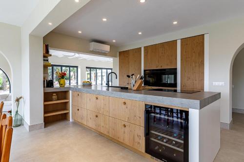 Villaen har 5 soveværelser, 4 badeværelser, sengetøj, håndklæder, tv med satellitkanaler, et fuldt udstyret køkken og terrasse med havudsigt.