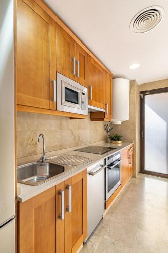Denne lejlighed med aircondition har 2 soveværelser og 2 badeværelser med bidet, badekar eller bruser og gratis toiletartikler. Lejligheden har desuden et veludstyret køkken med et køleskab, en opvaskemaskine og en ovn samt en hårtørrer.