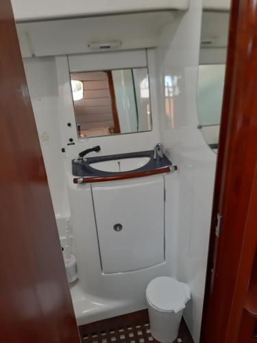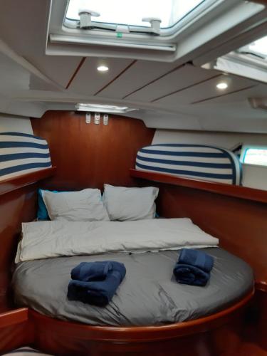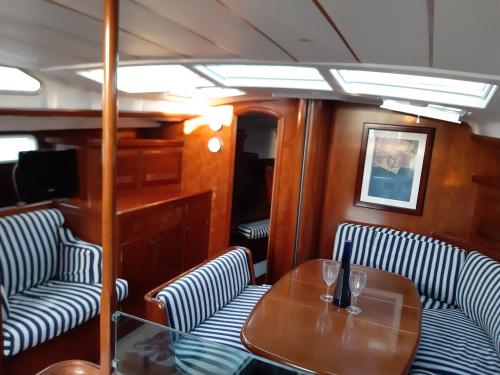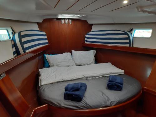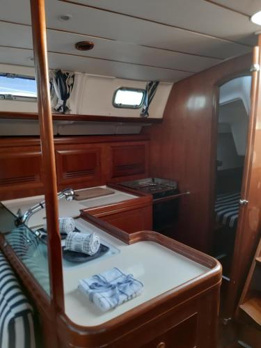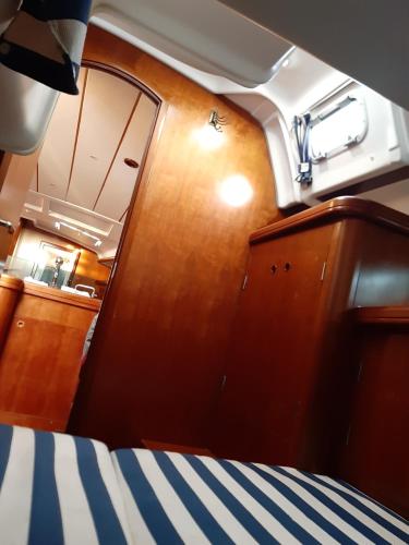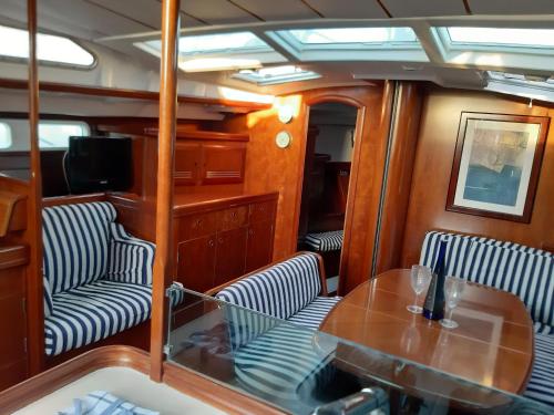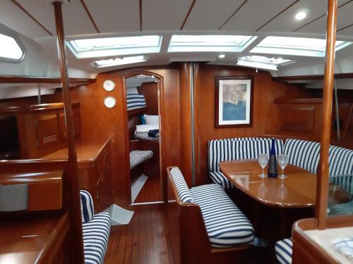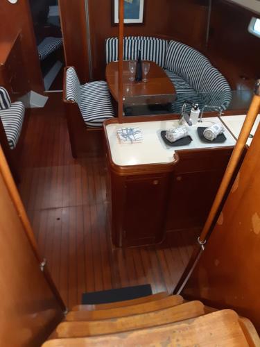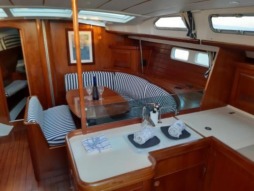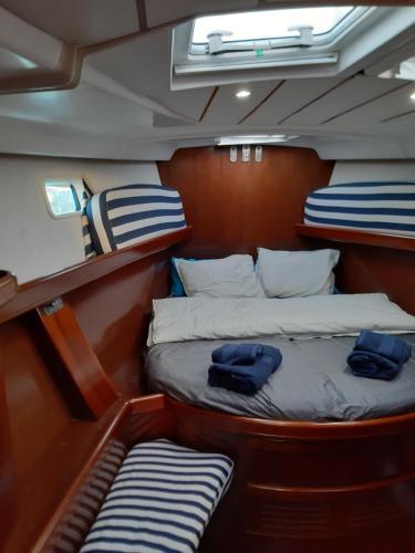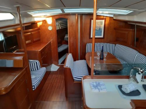 Denne båd består af 3 soveværelser, stue, et fuldt udstyret køkken med køleskab og kaffemaskine samt 2 badeværelser med bruser og en hårtørrer. Båden har håndklæder og sengetøj.
